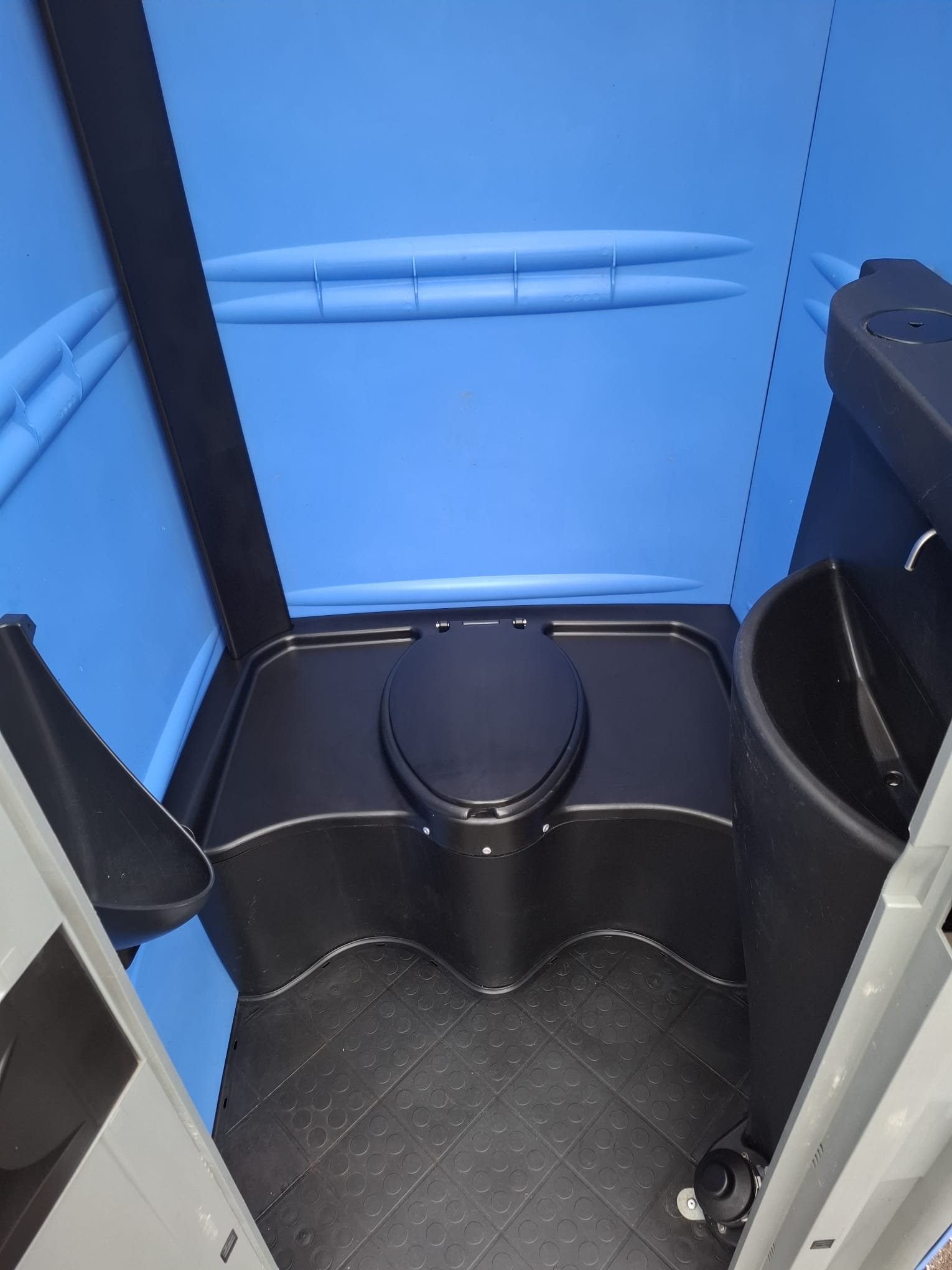 Plně funkční mobilní toaleta s pisoárem, umyvadlem a odvětráváním. Stáří 4 roky.
